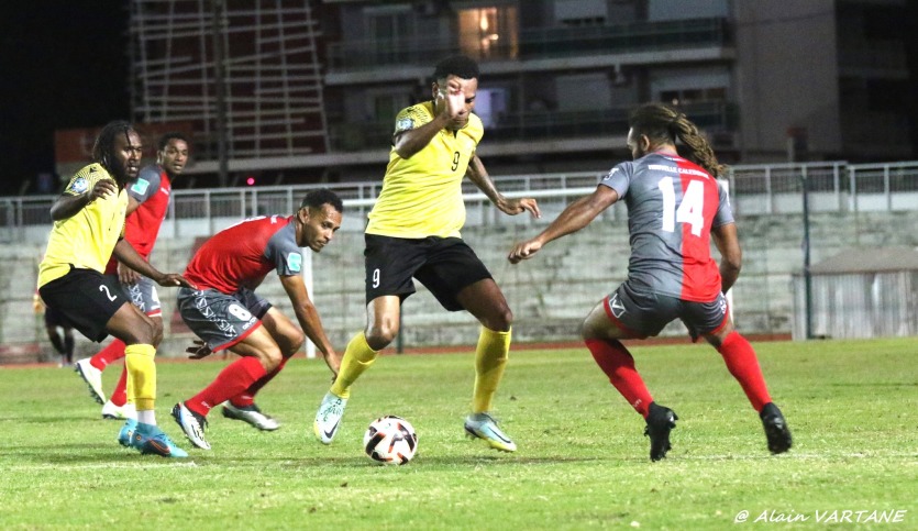 - Pierre Guillot | Crée le 28.11.2023 à 11h55 | Mis à jour le 28.11.2023 à 11h55ImprimerRetrouvailles en demi-finale des Jeux entre Calédonie et Vanuatu après la victoire par 4-0 des Cagous (en gris et rouge) le 7 octobre à Nouméa lors de la MSG Prime Minister Cup. Photo Alain VartaneBien que vainqueur 5-0 des Mariannes du Nord vendredi en début de soirée, l'équipe de Tahiti n'est pourtant pas parvenue à se qualifier pour les demi-finales du tournoi masculin des Jeux, contrairement à la Calédonie qui a facilement dominé le groupe A.