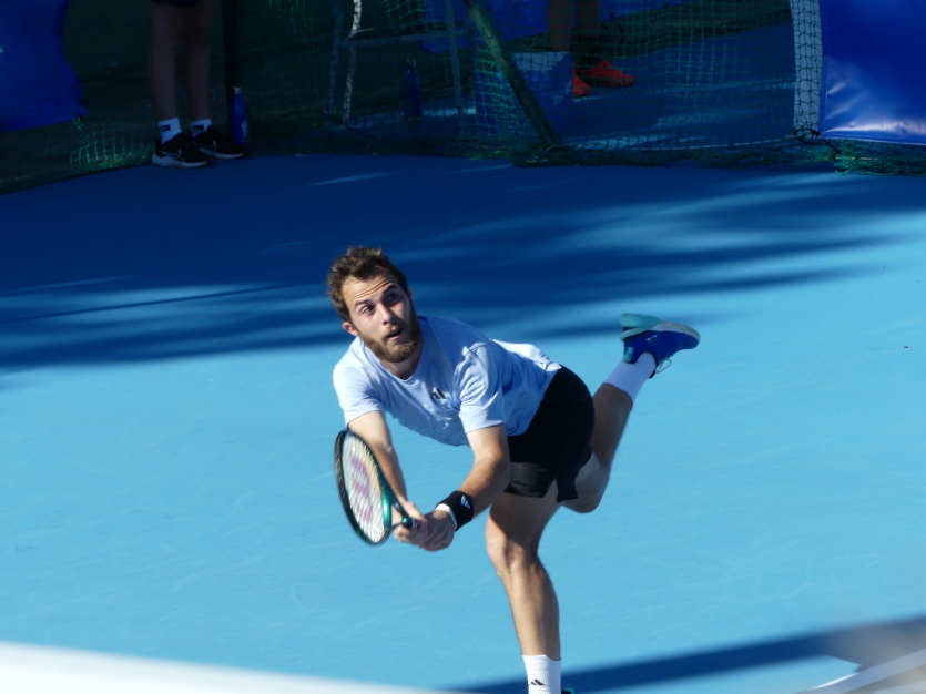 - Baptiste Gouret | Crée le 01.01.2024 à 20h59 | Mis à jour le 01.01.2024 à 20h59ImprimerMaxime Chazal s’est incliné en trois sets contre le joueur français Hugo Gaston. Photo Baptiste GouretLes deux joueurs ont offert un match à rebondissements à la centaine de spectateurs venus les encourager, ce lundi. Une rencontre de 3h30, qui a vu le joueur Calédonien passer tout près de la victoire.