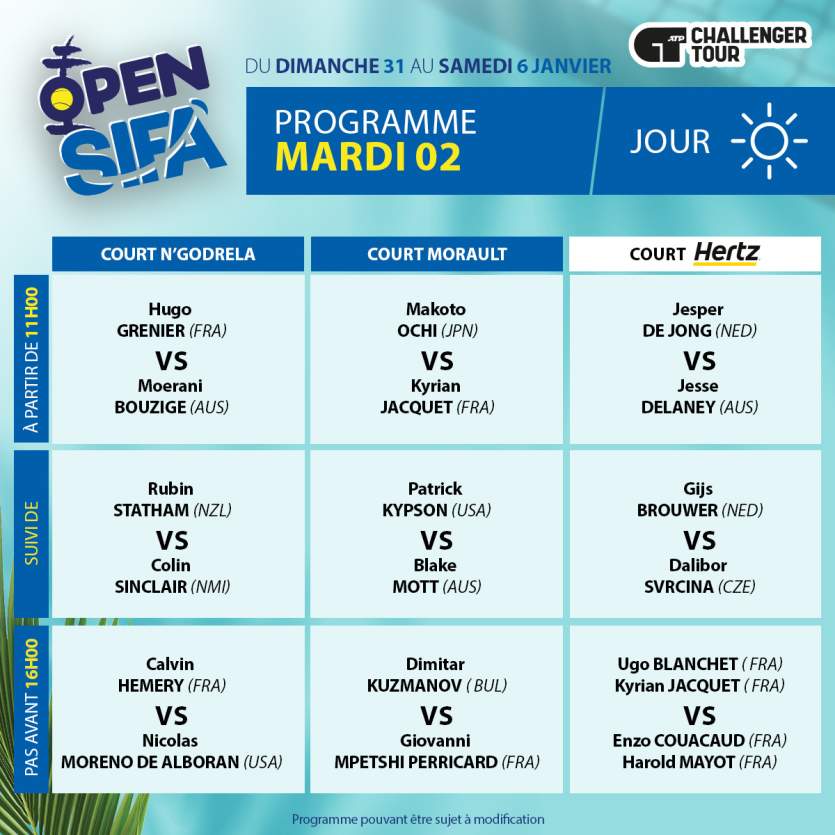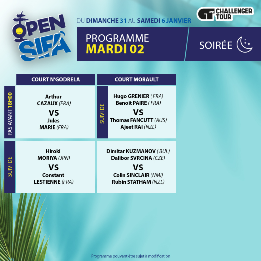 Le Français, 76e ATP, a gagné son premier match en deux sets. Photo Baptiste GouretLes deux têtes de série fouleront de nouveau les courts du Ouen Toro mercredi, pour leurs matchs du deuxième tour. En attendant, la journée de mardi est encore consacrée au premier tour, avec notamment l’entrée en lice de Constant Lestienne (87e ATP) face au Japonais Hiroki Moriya (406e ATP), sorti des qualifications. L’autre affiche de la soirée verra s’affronter Jules Marie (226e ATP) et Arthur Cazaux (130e ATP). Par ailleurs, les premiers matchs en double seront lancés, vers 16 heures.