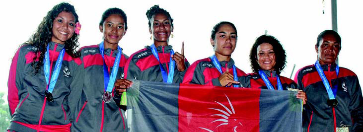 De gauche à droite, Tepua Chabal, Méléani Siakinuu, Rosemelle Terii, Marcy Manate, Fabienne Jarossay et Cynthia Mainguet.