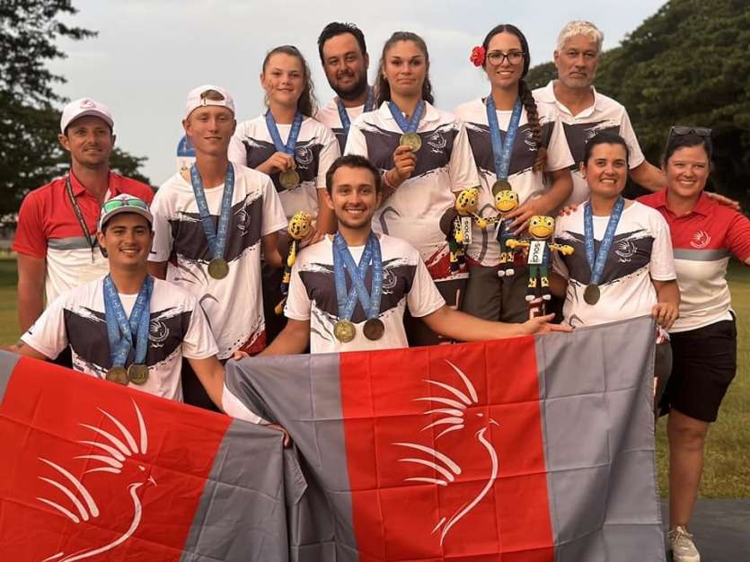 - NL | Crée le 26.11.2023 à 12h41 | Mis à jour le 26.11.2023 à 12h54ImprimerLes Cagous ont remporté les tournois de golf par équipes chez les femmes et chez les hommes. Photo Facebook Golf CagousPas de compétition ce dimanche à Honiara. La veille, 16 nouvelles médailles dont neuf en or sont venues garnir la moisson calédonienne. Après la première semaine des Jeux du Pacifique, la Nouvelle-Calédonie (125 récompenses) devance au classement général l’Australie (55 dont 28 en or) et Tahiti (86, 22 en or).