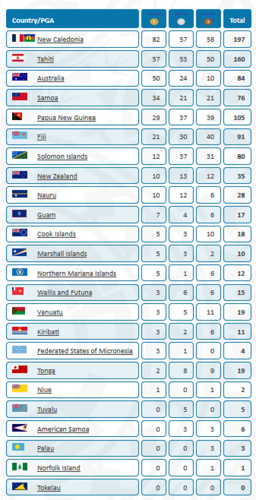 Le tableau final des médailles. Illustration Jeux du PacifiqueMERCI DE VOUS IDENTIFIER