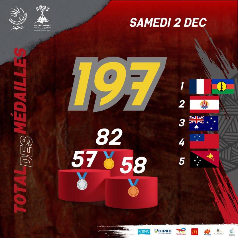 Illustration CTOSAvec 197 médailles, dont 82 en or, 57 en argent et 58 en bronze, les Cagous ont largement dominé ces Jeux aux Salomon. Ils terminent pour la quatorzième fois en tête du classement en 17 éditions.