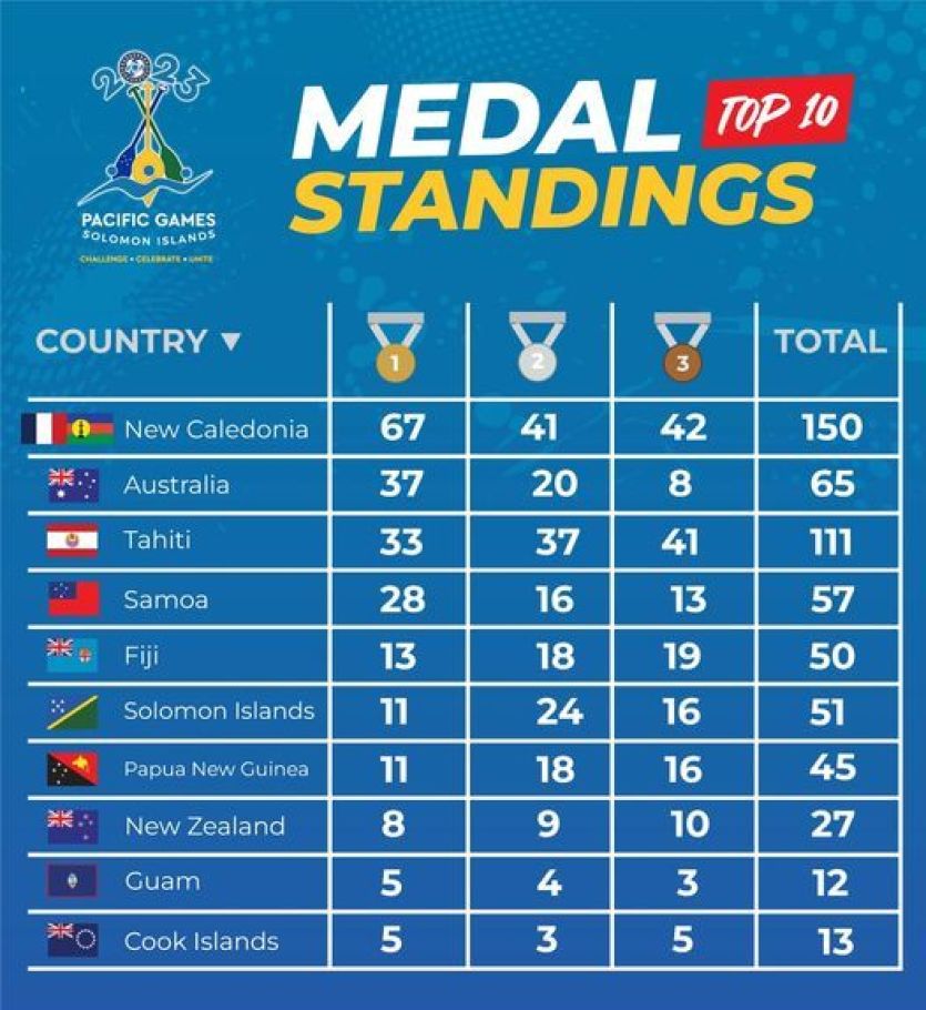 - Baptiste Gouret | Crée le 29.11.2023 à 07h41 | Mis à jour le 29.11.2023 à 07h41ImprimerLes femmes en va’a ont remporté l’or, mardi, aux Jeux du Pacifique. Photo CTOSHuit nouveaux podiums, mardi, pour les athlètes calédoniens, qui viennent d’atteindre la barre des 150 médailles à quatre jours de la fin des Jeux.