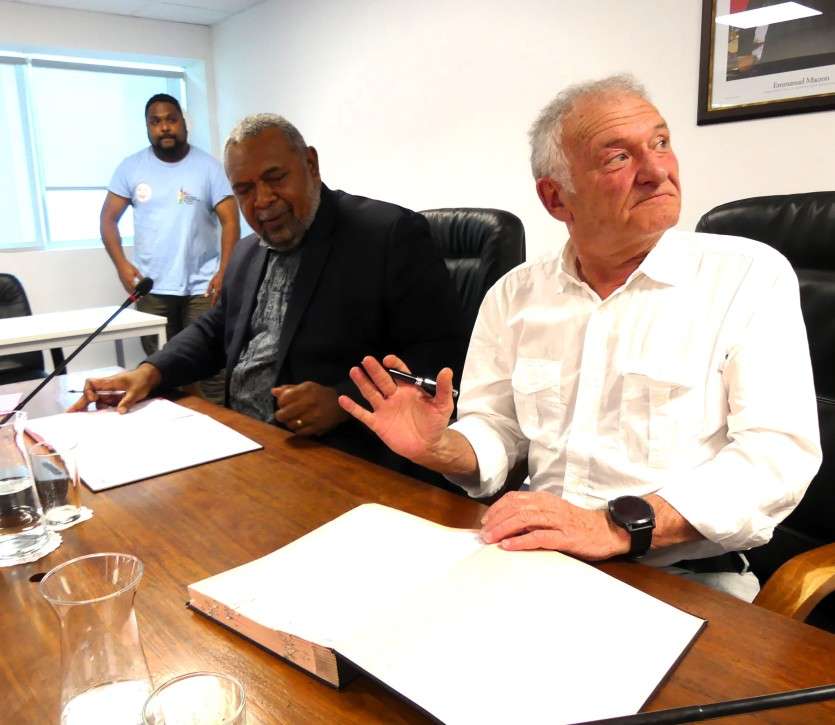 "Ce n’est pas tous les jours qu’on reçoit le président d’un club professionnel", s’est félicité Mickaël Forrest, membre du gouvernement en charge de la jeunesse et des sports, ce mardi 16 janvier. À ses côtés, Bernard Pontneau, président de la Section Paloise Béarn Pyrénées, club de Top 14, était invité à signer une "déclaration d’intention" afin "d’accompagner la structuration de la filière d’excellence rugby en Nouvelle-Calédonie".