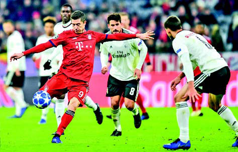 - L’attaquant polonais du Bayern Munich, Robert Lewandowski (en rouge), s’est hissé hier en tête du classement des buteurs de la Ligue des champions, à la faveur d’un doublé lors de la victoire 5-1 des Bavarois face au Benfica Lisbonne. Avec 6 réalisations en 5Il vous reste 48% de l'article à découvrir.Cet article est réservé aux abonnés.