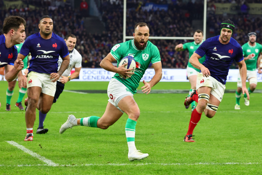 - AFP | Crée le 03.02.2024 à 09h09 | Mis à jour le 03.02.2024 à 09h31ImprimerLe demi de mêlée irlandais Jamison Gibson-Park s’en va marquer le premier essai du XV du Trèfle sous les yeux de Damian Penaud et de Peato Mauvaka. Photo Clément MAHOUDEAU / AFPLe rebond attendra: le XV de France, corrigé par l'Irlande (38-17) ce samedi matin à Marseille après un carton rouge pour Paul Willemse à la 32e minute, a compromis d'entrée ses chances dans le Tournoi des six nations et laisse le doute s'installer après l'échec du Mondial.