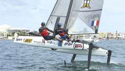 Théo Boré, le seul Calédonien présent, avait de quoi être sûr de lui. Après un passage sur les Elliot 6 du Cercle nautique calédonien puis sur les Hobie Cat 16 du Catamaran club de Nouméa, le Cagou de 18 ans a passé son année 2017 au sein du Pôle France jeune de Marseille, où il naviguait sur un 49er. Une embarcation réputée instable et difficile à maîtriser.