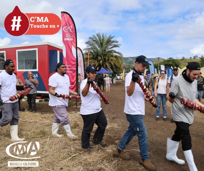 Les alternants du Centre de formation de l’artisanat (CFA) de la Chambre de métiers et de l'artisanat (CMA) en CAP et BP boucherie ont réalisé une brochette de cerf de 6 m de long. "Un record du monde de la plus longue brochette de cerf jamais réalisée", selon la CMA. Photo CMAParmi la foule d’animations au programme, aux côtés des activités phares dont les concours agricoles le vendredi, les jeux équestres, les démonstrations de tonte de mouton et de dépeçage de cerf, le rodéo dimanche, les sports mécaniques, un gros effort a été réalisé sur la dégustation de viande de cerf rusa, indique Levay Roy. Une brochette de six mètres a notamment été cuisinée. En tout, pas moins de 300 kg ont été offerts à la dégustation.