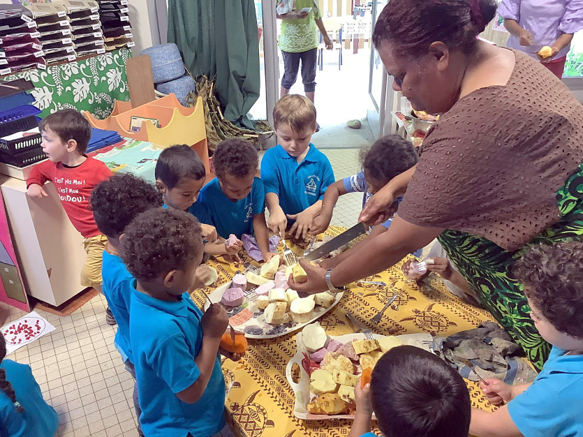 - À la veille des vacances, les élèves de l'école maternelle des Lys d'eau et de la classe "langue kanak" ont confectionné dans le cadre de leur projet un grand bougna marmite pour la soixantaine d'élèves que compte cette division pilotée par Christelle Boi. Dès 8 heures toutes les petites mains ont participé à la préparation de cette recette traditionnelle. "Cela a permis à bon nombre d'élèves de vivre et d'expérimenter la préparation d'un plat kanak et le vivre ensemble", a expliqué l'enseignante.Dernière touche avant la cuisson, les tubercules et les légumes ont été recouverts de lait de coco par les écoliers. La préparation du plat achevé, Il ne restait plus qu'à mettre la marmite sur le fourneau pour la cuisson. Après l'effort, la récompense. Les écoliers ont dégusté leurIl vous reste 17% de l'article à découvrir.Cet article est réservé aux abonnés.