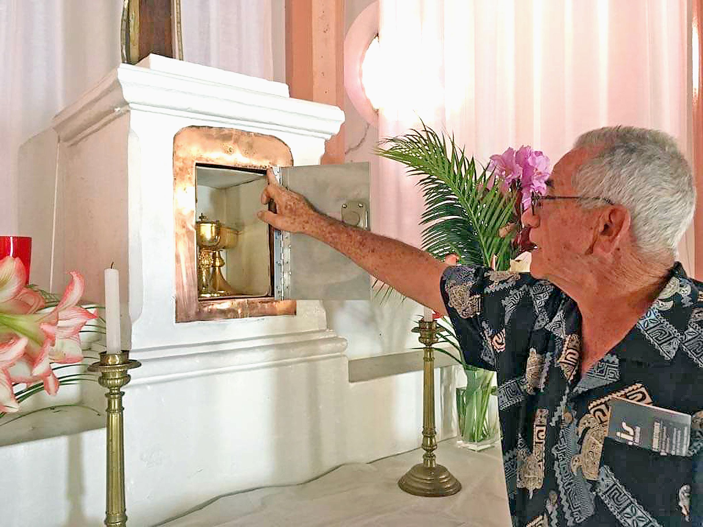 « Le soir, lorsque je ferme l’église, je récite un Notre Père devant le tabernacle et un Je vous salue Marie devant Marie. Mercredi soir, je n’ai rien remarqué d’anormal, tout comme jeudi matin en ouvrant l’église à 6 h 30. C’est un membre de la famille du père Joseph Tui, venu prier dans la matinée, qui a découvert les dégradations. Le père Joseph Tui, le nouveau curé de la paroisse, avec deux des membres de sa famille ont passé leur après-midi, à essayer de redresser la porte, réparer les charnières et remettre le tout en place. Le montant du préjudice a été estimé à peu près à 90 000 francs. » Aujourd’hui, grâce à l’aide d’un paroissien et de deux entreprises de Nouméa, les traces de cette profanation sont totalement effacées. Une porte toute neuve en acier trempé a été notamment installée en lieu et place de l’ancienne. Malgré tout, pour marquer les esprits, les portes de l’église de la paroisse du Sacré-Cœur, en dehors des offices et autres cultes, resteront closes jusqu’à dimanche. « Cette fermeture de l’église a été demandée par le vicaire général », précise Georges Proulx. Si les paroissiens condamnent à l’unanimité cet acte, certains, cependant, ne comprennent pas pourquoi cette fermeture de leur lieu de prière.