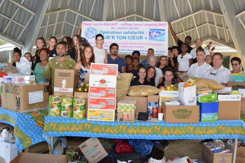 - L'opération solidaire « Lib'r ton cœur », lancée par les élèves du collège Louis-Léopold-Djiet au début du mois de mai, a permis de récolter 2 500 denrées alimentaires et produits de première nécessité. Quatre associations locales les ont récupérés vendredi au cours d'une cérémonie festive, avant d'aller les redistribuer aux familles nécessiteuses. 320 élèves, dont une trentaine d'ambassadeurs du projet, y ont participé.Les associations Un sandwich pour autrui, la Fondation des sans voix, Bien vivre à Bourail et la Banque alimentaire ont été chaleureusement accueillies par les enfants. Photo Nadège BègeBeau succès aussi pour le concours de dessins chapeauté par Julie Langlais, professeure d'arts plastiques.Il vous reste 87% de l'article à découvrir.Cet article est réservé aux abonnés.