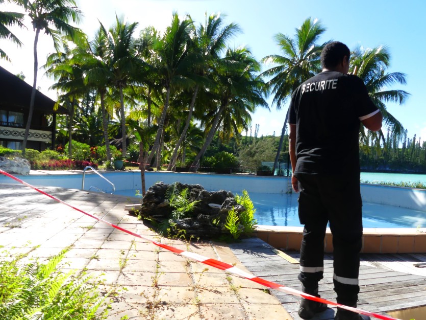 Dans le hall d’accueil, les draps qui recouvrent fauteuils, tables et autres mobiliers, prennent la poussière dans un silence pesant. Autour de la piscine, vide, les rubans de signalisation, condamnant l’accès, ont pris la place des chaises longues. Dans les jardins luxuriants, le chant des oiseaux est à peine perturbé par les rondes des agents de sécurité, déployés 24 heures sur 24 pour surveiller le site. Voilà huit mois que le Méridien de l’île des Pins n’accueille plus de visiteurs, contraint de fermer ses portes depuis les exactions. "Du jamais vu" en vingt-six ans de carrière pour Christian Vakié, le directeur hébergement de cet hôtel 5 étoiles, qui commence à peine à retrouver le sourire après de longs mois "très stressants". Car cette "vitrine" du tourisme en Nouvelle-Calédonie a bien failli mettre définitivement la clef sous la porte.