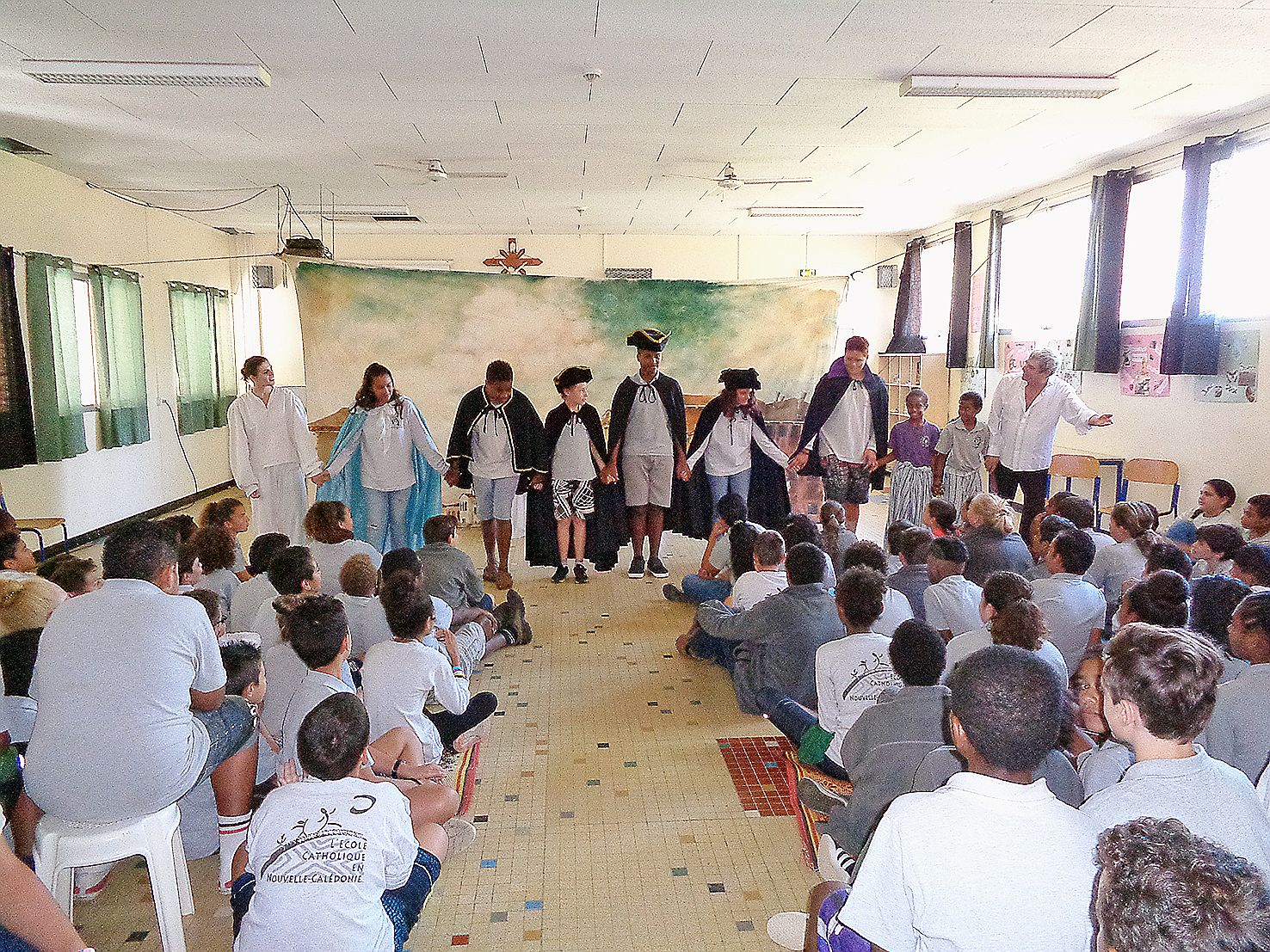 - La Foa. Dans le cadre de leur tournée en Nouvelle-Calédonie, deux comédiens du théâtre du Versant ont donné, lundi, une représentation de la commedia dell’arte au collège Saint-Dominique-Savio.Dans la grande salle du collège Saint-Dominique-Savio, Gaël Rabas, comédien du centre de recherche théâtrale international de Biarritz, explique en préambule l’histoire de la comédie aux élèves. Avec un autre comédien du théâtre du Versant, actuellement en tournée en Nouvelle-CaléIl vous reste 89% de l'article à découvrir.Cet article est réservé aux abonnés.