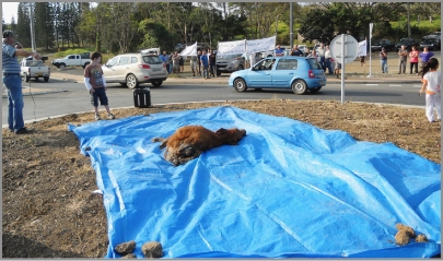 - La Foa. Nouvelle action des éleveursLe collectif des éleveurs a mené une nouvelle action hier après-midi au rond-point de la RT1, à la sortie nord de la commune. L’objectif était de montrer un veau coupé en deux par des braconniers il y a deux jours à Sarraméa et dont la moitié a été emportée. Ils ont ainsi exhibIl vous reste 45% de l'article à découvrir.Cet article est réservé aux abonnés.