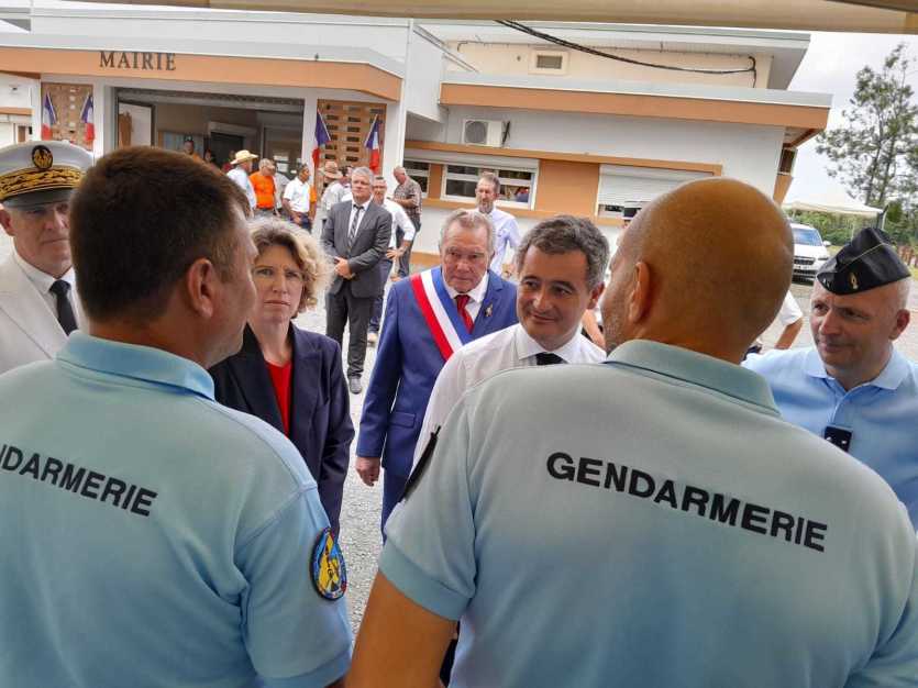 La visite de Gérald Darmanin et de Marie Guévenoux, à Moindou, était l’occasion de saluer les gendarmes mobilisés dans le secteur. Photo Anthony TejeroUne lutte qui s’inscrira pleinement dans un autre engagement pris par le président de la République Emmanuel Macron : la création d’une nouvelle brigade de gendarmerie mobile, à Moindou, dont la particularité sera de s’atteler à la protection de l’environnement.