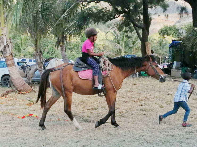 Les balades à cheval organisées par Abel Euribeari, sur le champ de foire, ont été très appréciées des plus petits. Photo Zora Santacroce /Thio tourisme
