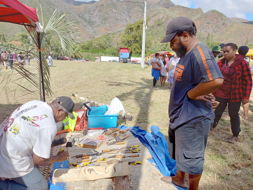 Le sculpteur Emile Moindou a partagé son savoir-faire sous les yeux des visiteurs, tout au long de ce week-end. Photo Zora Santacroce /Thio tourisme