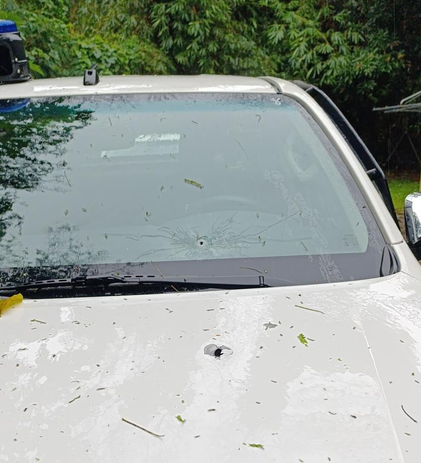 - A.-C.P. | Crée le 17.08.2025 à 08h45 | Mis à jour le 21.08.2025 à 17h27ImprimerTrois impacts ont été relevés sur le capot moteur et un quatrième à la base du pare-brise, qui aurait traversé le tableau de bord. Photo DRLes faits se sont produits dans la nuit du 15 août. Des gendarmes ont constaté la présence de quatre impacts d’arme à feu sur le capot de leur véhicule. Aucun blessé n’est à déplorer. Une enquête a été ouverte.