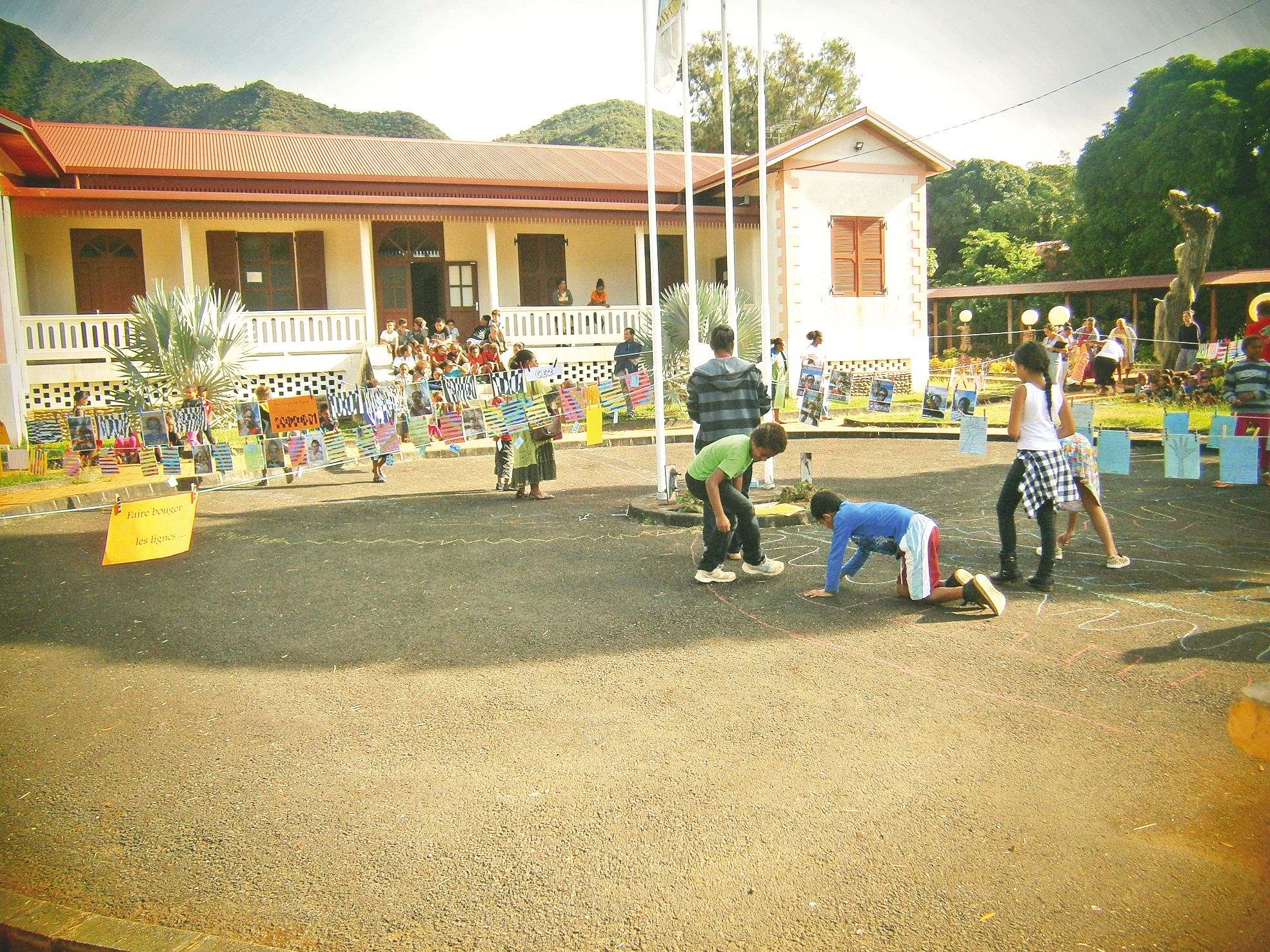 - Thio. Les 200 élèves du groupe scolaire et leurs enseignants ont participé au projet éducatif « La grande lessive », autour du thème « Faire bouger les lignes ». Ils ont exposé leurs productions dans les jardins de la mairie de Thio vendredi dernier. La journée s'est terminée par un goûIl vous reste 6% de l'article à découvrir.Cet article est réservé aux abonnés.