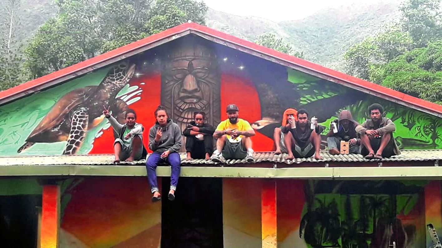- Thio. Accompagnés par le graffeur professionnel Kuby, dix jeunes âgés de 20 à 25 ans, issus de différentes tribus de la commune, participent du 14 au 23 mai à la création d’une œuvre murale sur la salle des jeunes de la tribu de Thio-Mission. Lancé par Thio tourisme et le musée de la Mine, ce projet financé par la Mission aux affaires culturelles et la direction de la culture de la province Sud visait à fédérer les jeunes autour de l'art.Naomi Moindou, 20 ans, de la tribu de Saint-Paul, est motivée et toujours de bonne humeur. Durant cette résidence, Henri « Gnady » Moindou, 20 ans, s’est révélé être un artiste prometteur. Yaelle M'Boueri, 22 ans, de la tribu de Saint-Michel, avaitIl vous reste 37% de l'article à découvrir.Cet article est réservé aux abonnés.