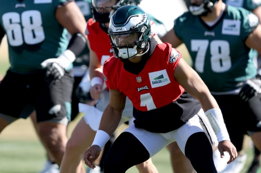 Jalen Hurts, le quaterback des Philadelphia Eagles, à l'entraînement à quelques jours du Super Bowl le 10 février 2023 à Tempe dans l'Arizona Rob Carr [GETTY IMAGES NORTH AMERICA/AFP/Archives]