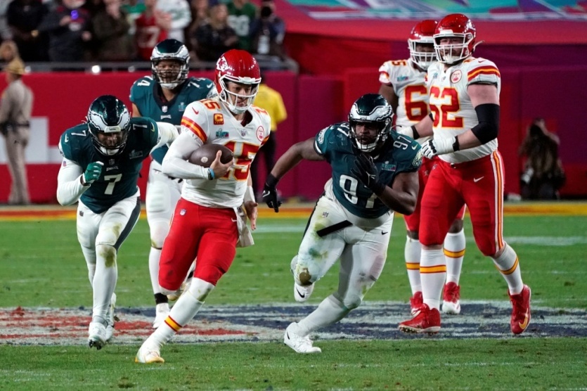 Le quarterback des Kansas City Chiefs Patrick Mahomes court avec le ballon lors du 57e Super Bowl, le 12 février 2023 à Glendale, en Arizona TIMOTHY A. CLARY [AFP]MERCI DE VOUS IDENTIFIER