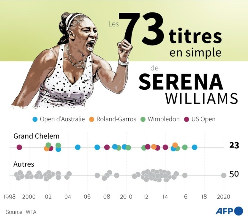 Les 73 titres de Serena Williams en simple Cléa PÉCULIER [AFP/Archives]MERCI DE VOUS IDENTIFIER