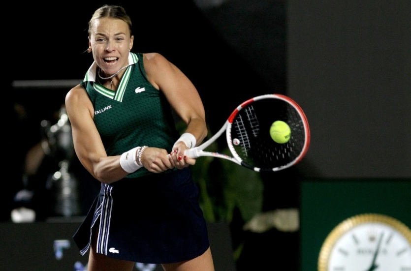 L'Estonienne Anett Kontaveit pendant la finale du Masters WTA contre l'Espagnole Garbine Muguruza, le 17 novembre 2021 à Zapopan, au Mexique Ulises Ruiz [AFP]MERCI DE VOUS IDENTIFIER
