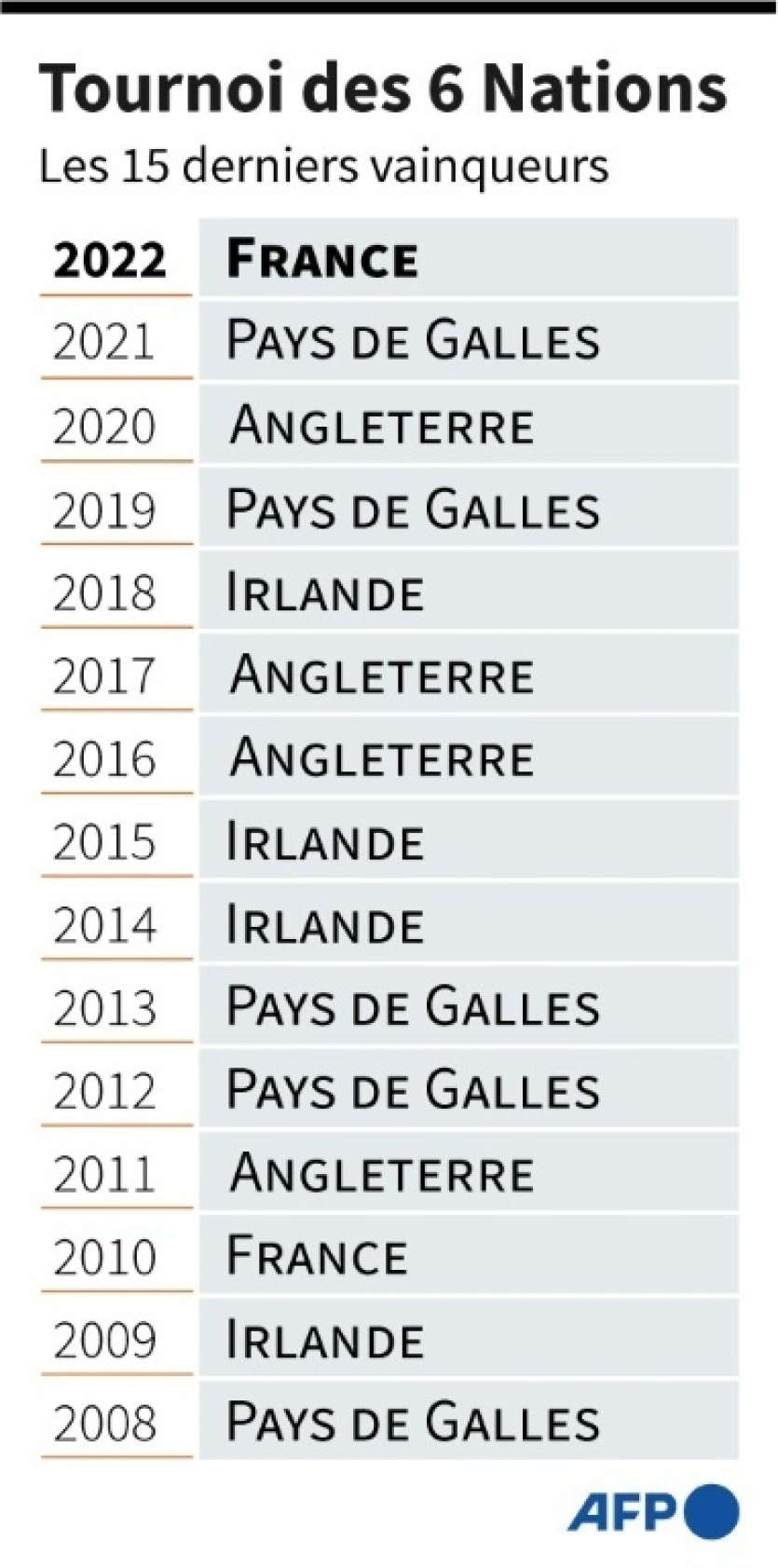 Les 15 derniers vainqueurs du tournoi de rugby des six nations [AFP]