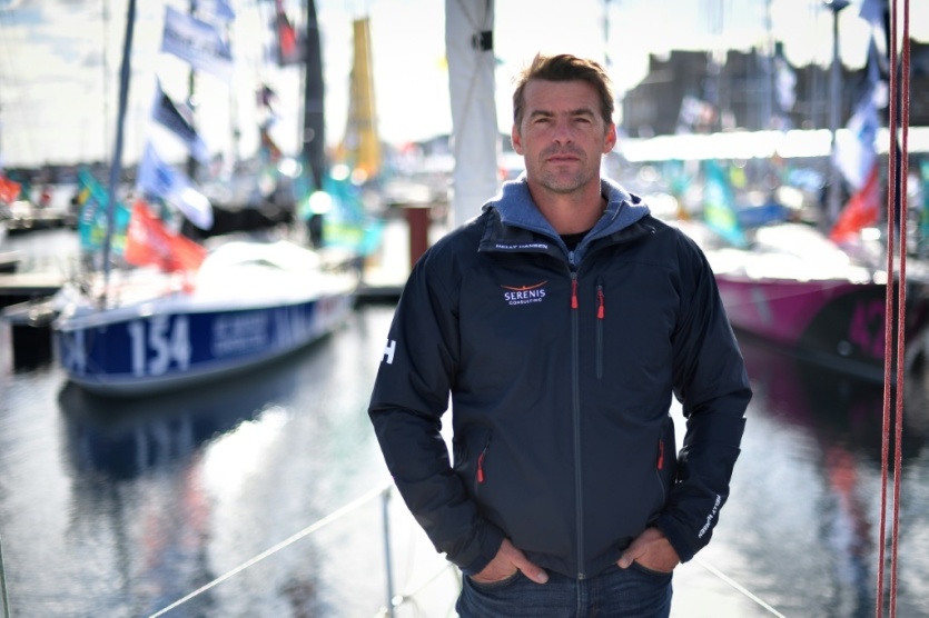 Le skipper français Jean Galfione, à bord de son monocoque Class40 "Serenis Consulting", le 29 octobre 2018 à Saint-Malo, à six jours du départ de la Route du Rhum LOIC VENANCE [AFP/Archives]MERCI DE VOUS IDENTIFIER