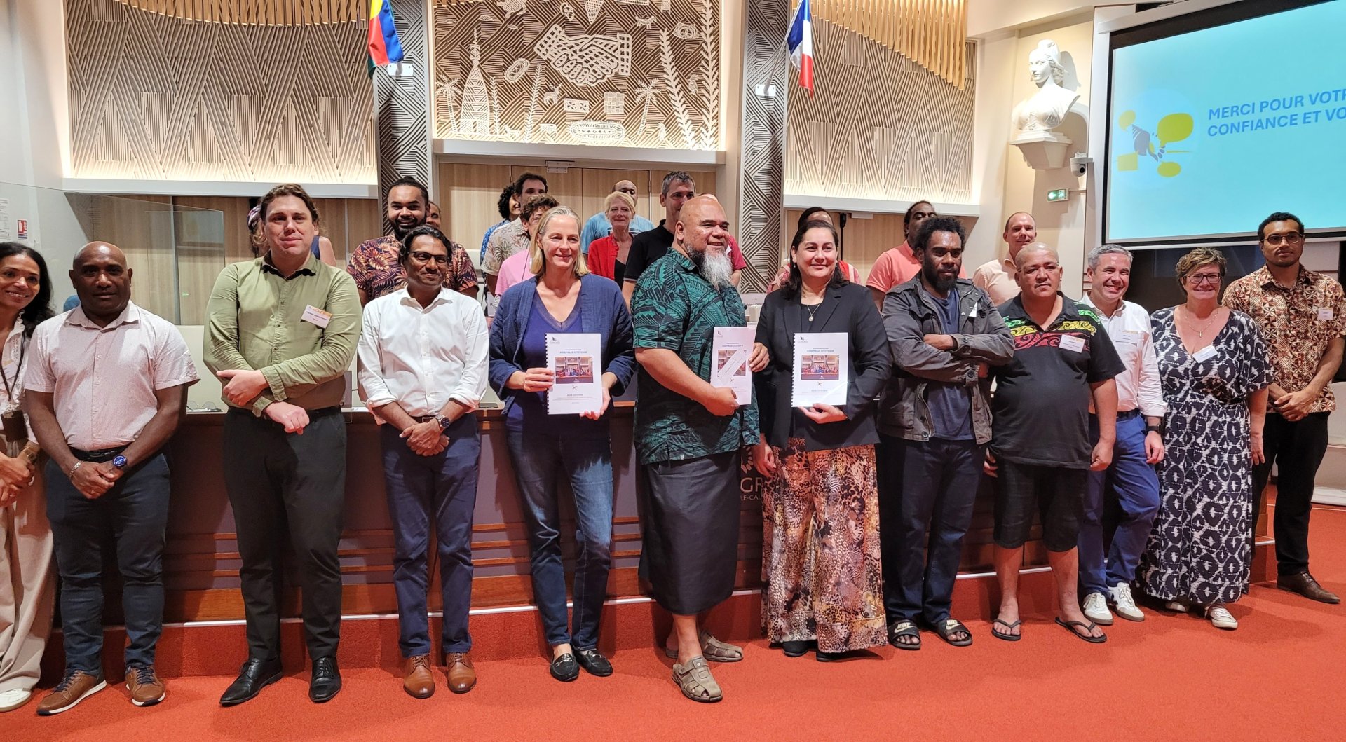 L’avis de l’assemblée citoyenne expérimentale a été rendu samedi 25 avril, au Congrès. Photo Anne-Claire PophillatSamedi, en fin de journée, l’assemblée a rendu officiellement son avis, qui doit être présenté aux élus lors d’une commission plénière mercredi 29 avril, puis lors d’une restitution publique. Le document comprend 17 propositions visant à rendre plus lisible l’action des institutions auprès des habitants, à donner un espace d’expression aux administrés, et à justifier les dépenses d’argent public. "Des propositions réalistes et construites", estime Veylma Falaeo.