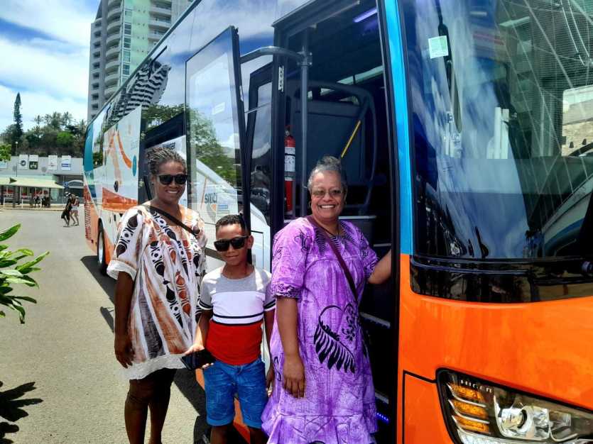 - Anthony Tejero | Crée le 16.01.2024 à 14h57 | Mis à jour le 16.01.2024 à 17h56ImprimerEmilienne, Lynton et Marie-Laure Kateko, de Ponérihouen, sont venus visiter les nouveaux cars en famille, ce mardi matin, sur le parking de l'ancien CHT. Photo Anthony TejeroLa nouvelle flotte du réseau Raï, qui doit progressivement remplacer les cars vieillissants à partir de février, a été présentée aux Calédoniens ce mardi. Premières impressions d'usagers.