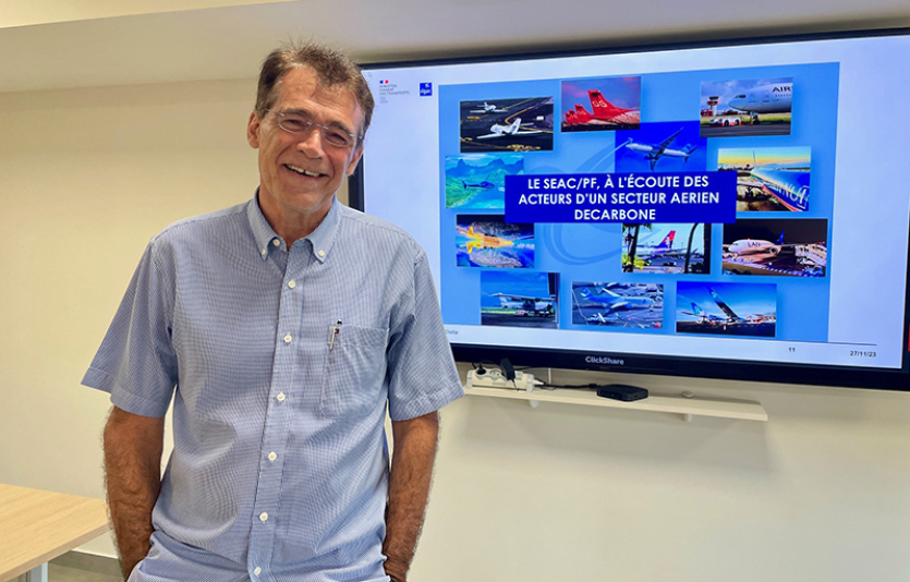 - Caroline Perdrix / Radio 1 Tahiti | Crée le 02.12.2023 à 19h08 | Mis à jour le 02.12.2023 à 19h08ImprimerMarc Houalla est le directeur du Service d’Etat Aviation civile (SEAC) en Polynésie. Photo Caroline Perdrix / radio1Le service d’État de l’aviation civile en Polynésie, qui a sous son autorité l’aéroport de Tahiti-Faa’a, a présenté cette semaine son plan d’aviation environnemental, sous-titré " feuille de route vers zéro émission carbone " pour l’ensemble de la chaîne du secteur aérien à l’horizon 2050. Photovoltaïque, Swac, navettes électriques, drones, carburant alternatif, tous les moyens sont à l’étude pour verdir la plateforme aéroportuaire et faire de ce point d’entrée des visiteurs au fenua une vitrine du développement durable indique notre partenaire Radio1.