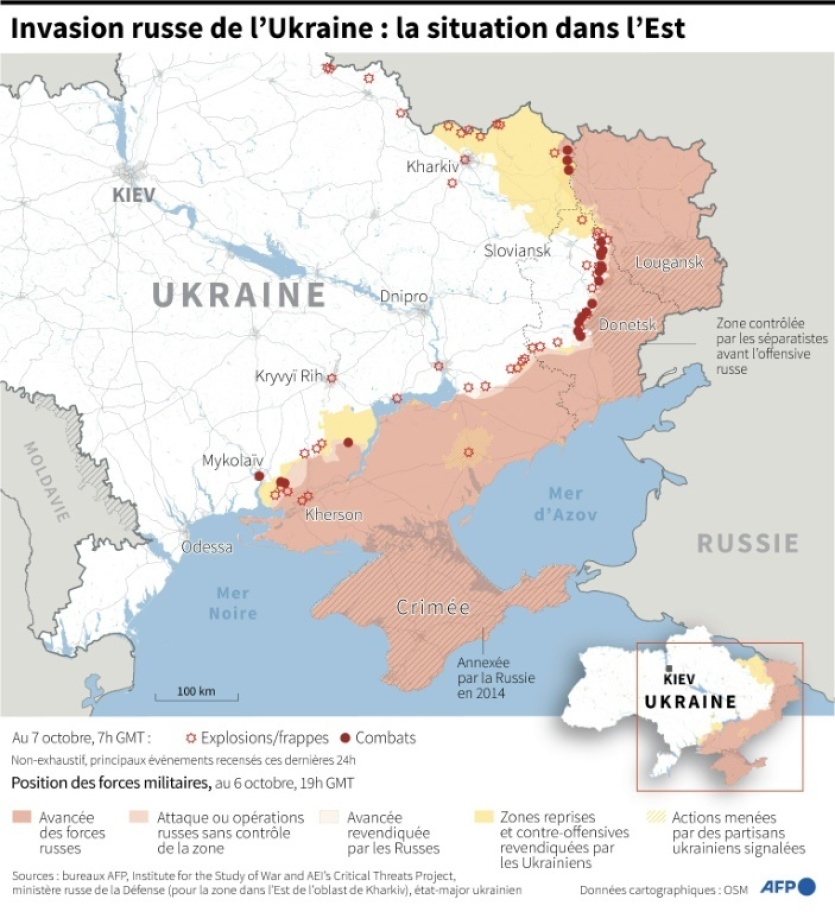 Depuis début septembre, les forces russes ont été obligées de reculer sur de nombreux points du front. Elles ont notamment été obligées de se retirer de la région de Kharkiv (nord-est) et de reculer dans celle de Kherson.