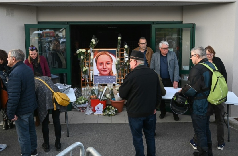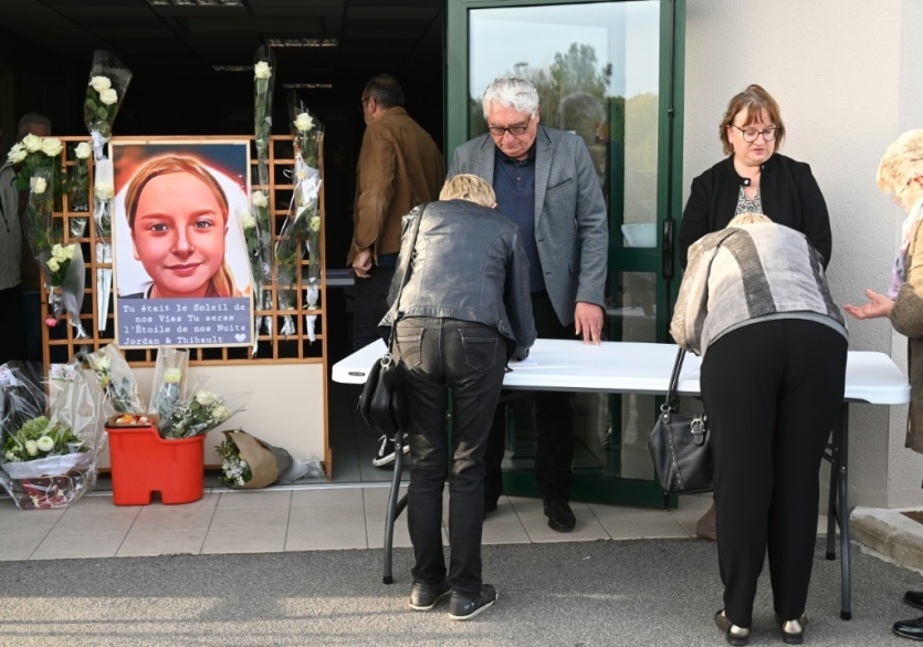 Des personnes signent le registre de condoléances lors d'un dernier hommage à Lola, la collégienne assassinée, le 21 octobre 2022 à Fouquereuil, dans le Pas-de-Calais DENIS CHARLET [AFP]