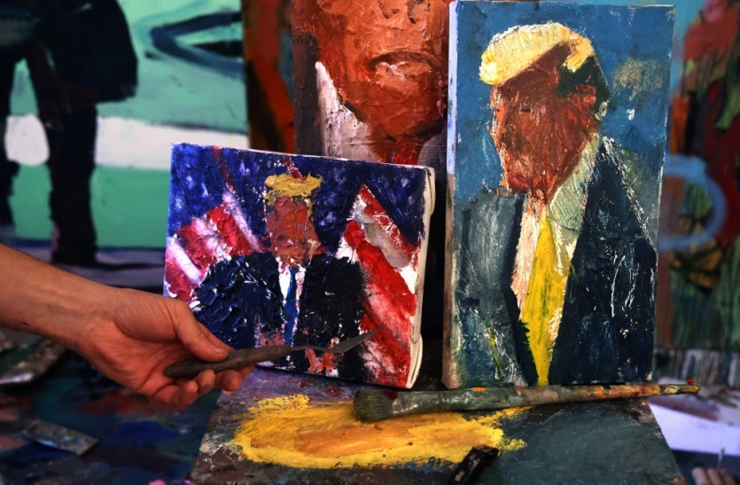 Sur toile ou sur bois, le peintre israélien Iddo Markus a fait le portrait de l'ex-président américain Donald Trump Emmanuel DUNAND [AFP]