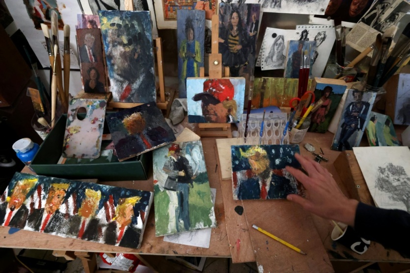 L'atelier du peintre israélien Iddo Markus regorge de portraits de Donald Trump, à Haïfa le 22 janvier 2021 Emmanuel DUNAND [AFP]MERCI DE VOUS IDENTIFIER