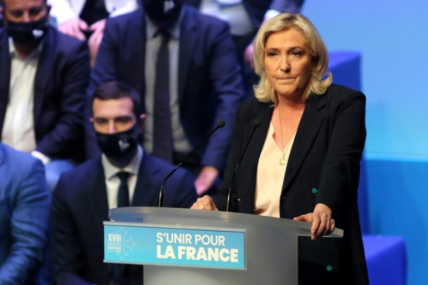 la présidente du Rassemblement National (RN) Marine Le Pen à Perpignan le 4 juillet 2021AFP/Valentine CHAPUISMarine Le Pen won re-election as head of France's far-right National Rally on July 4, 2021, at a party congress, where she is seeking new impetus for her 2022 presidential bid after performing badly in regional polls. VALENTINE CHAPUIS [AFP]