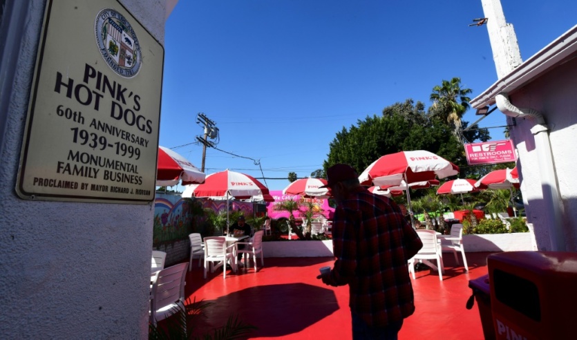 La réouverture de la terrasse du restaurant Pink's Hot Dogs à Los Angeles (Californie) le 1er mars 2021 Frederic J. BROWN [AFP]