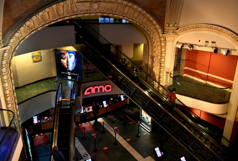 Le cinéma AMC Empire 25 de Times Square à New York, où les cinémas ont rouvert, le 5 mars 2021 Angela Weiss [AFP]