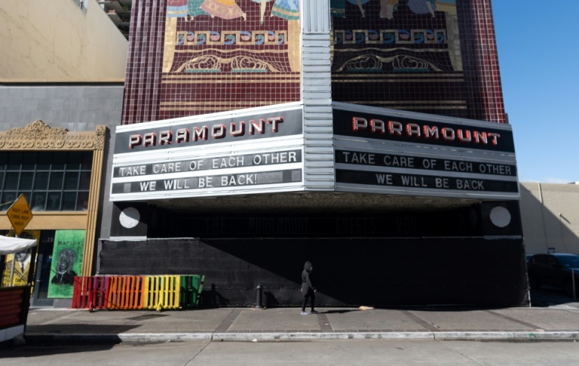 Un cinéma fermé à Oakland (Californie) le 12 février 2021 JOSH EDELSON [AFP/Archives]MERCI DE VOUS IDENTIFIER
