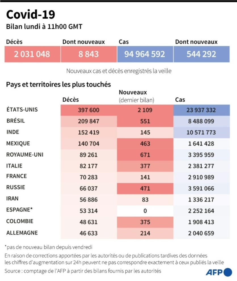 Covid-19 : bilan mondial [AFP]MERCI DE VOUS IDENTIFIER