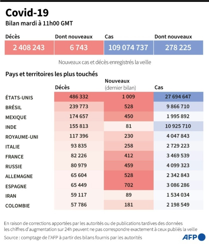 Covid-19 : bilan mondial [AFP]MERCI DE VOUS IDENTIFIER