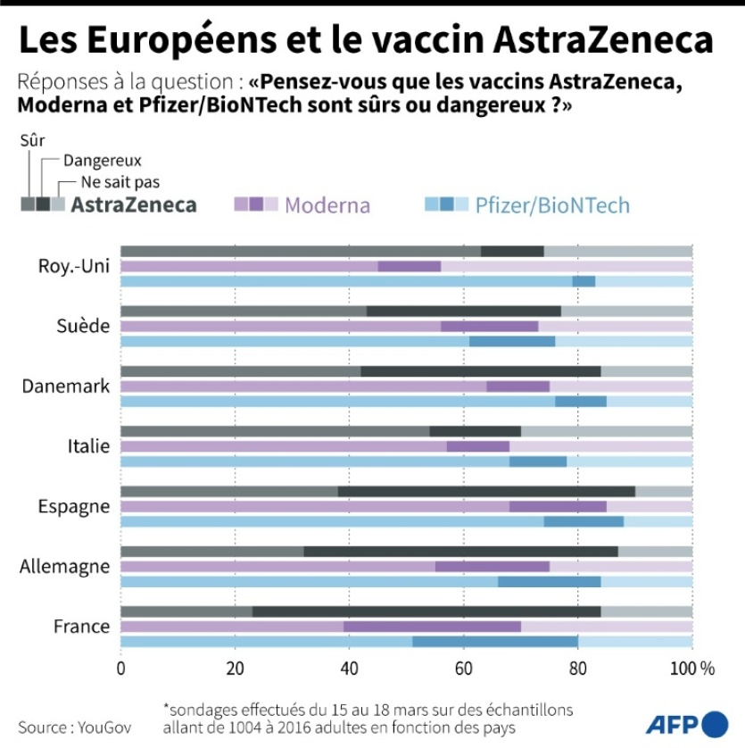 La confiance de l'opinion publique dans ce vaccin a chuté ces deux dernières semaines, en raison de la crainte d'effets secondaires, selon une étude d'opinion réalisée entre le 12 et 18 mars.