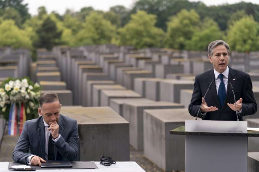 Pour son premier déplacement en Allemagne, M. Blinken a annoncé, conjointement avec M. Maas, le lancement d'une initiative pour rechercher des formes "innovantes" permettant d'enseigner le génocide de six millions de juifs mais aussi des homosexuels, Roms et opposants politiques par les nazis sous le Troisième Reich.