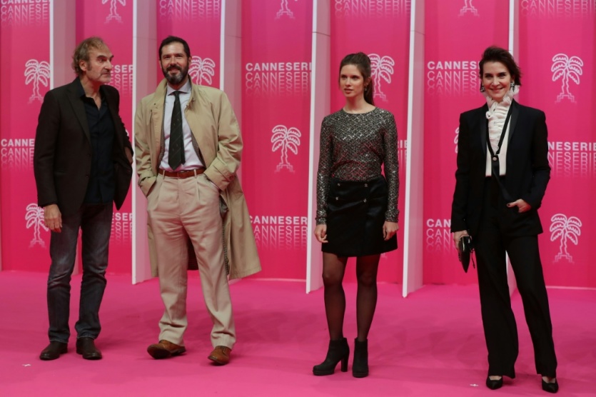 Géraldine Pailhas et Melvil Poupaud , à Cannes, le 11 octobre 2020 pour la projection de la série Ovni(s) Valery HACHE [AFP/Archives]MERCI DE VOUS IDENTIFIER