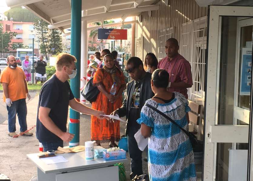 - | Crée le 25.04.2020 à 09h37 | Mis à jour le 25.04.2020 à 11h20ImprimerLes 180 passagers de la liste établie par la province des îles Loyauté devaient se soumettre au protocole sanitaire de la DACAS, afin d'être admis à bord. Photo JJ