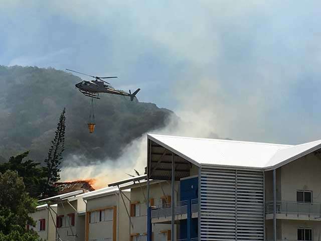 Les 30 000 m3 de déchets en feu depuis ce matin sur le site de la société Mana provoquent un fort dégagement de fumée et de chaleur.« Le feu a été vers l'extérieur du bâtiment vers le faré de la gendarmerie », a expliqué le capitaine Laurent Forfait, commandant des opérations de secours.En plus des moyens déjà présents sur place, un hélicoptère bombardier d'eau ainsi qu'un véhicule de la sécurité civile sont venus en soutien de l'opération.Si l'incendie du faré est de la gendarmerie est maîtrisé, le combat contre les déchets en feu « va être long », explique le capitaine Forfait.Plus d'informations à venir.[12h33] Départ de feu à la déchetterie de la société ManaTrois camions de pompiers sont actuellement engagés sur le site de la déchetterie SVP Mana, à Normandie, dans le cadre d'une intervention sur un départ de feu. Deux hélicoptères bombardiers d'eau sont également présents en soutien.La déchetterie de la société Mana recueille et traite les déchets verts du Mont-Dore.