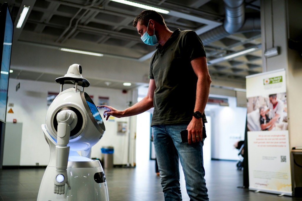 Quand les patients belges craignant d'avoir été contaminés par le coronavirus se rendent à l'hôpital universitaire d'Anvers, le premier visage qu'ils voient n'est pas celui d'une infirmière masquée mais d'un robot vaguement humain.